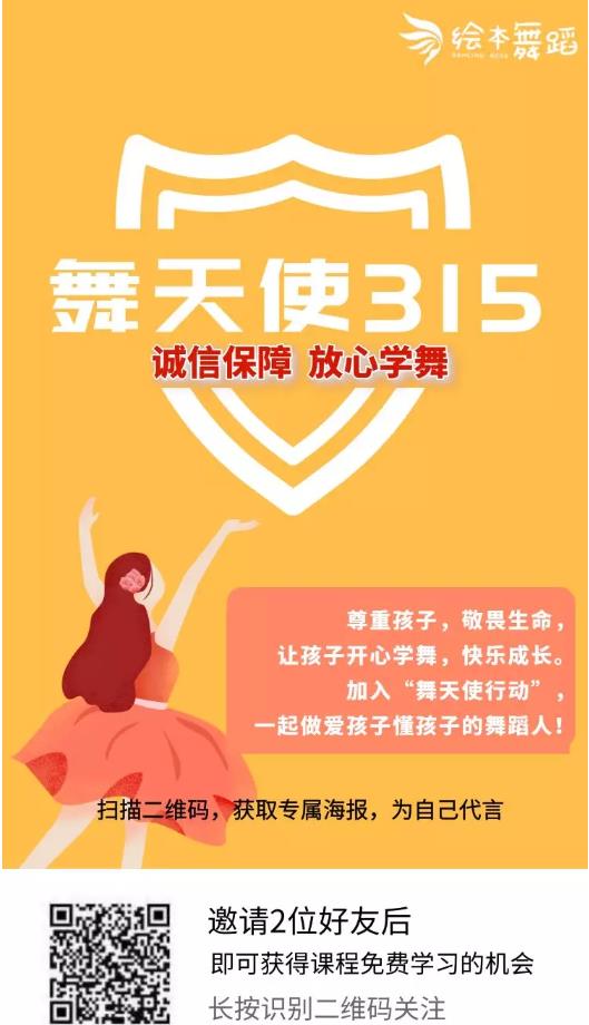 扫描下方海报二维码,加入了“315舞天使行动”,获取自己专属的舞天使海报,一起做懂孩子爱孩子的舞蹈教育工作者。
