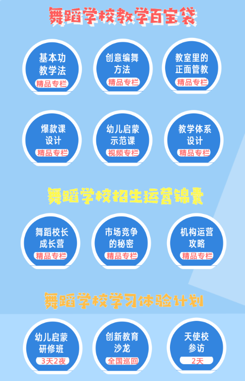 务,也为舞蹈教育从业者,提供解决机构教学和运营问题的实用课程。
