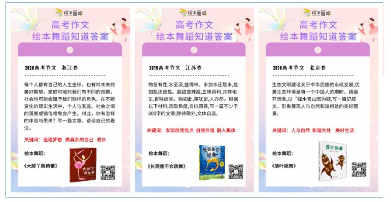 而且惊喜的是,有老师发现,连续三年,在绘本舞蹈里都能找到高考作文的答案!