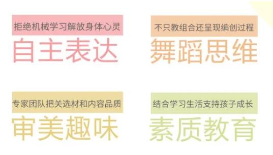 作为全国首套3-6岁舞蹈启蒙综合素养课。绘本舞蹈,提倡舞蹈启蒙不应该从压腿下腰开始。我们更注重的是培养孩子的自主表达、舞蹈思维、审美趣味、素质教育,这些都是她们将来面向未来的核心竞争力。