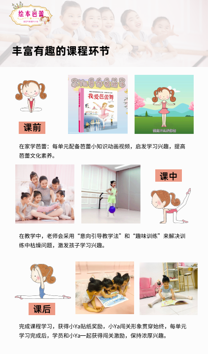 为了让孩子在快乐中体验舞蹈的魅力,在舞蹈的魅力中塑造挺拔的身姿,绘舞梦团队特意研发了一套专为4-6岁儿童研发的趣味芭蕾(基本功)课程——绘本芭蕾。