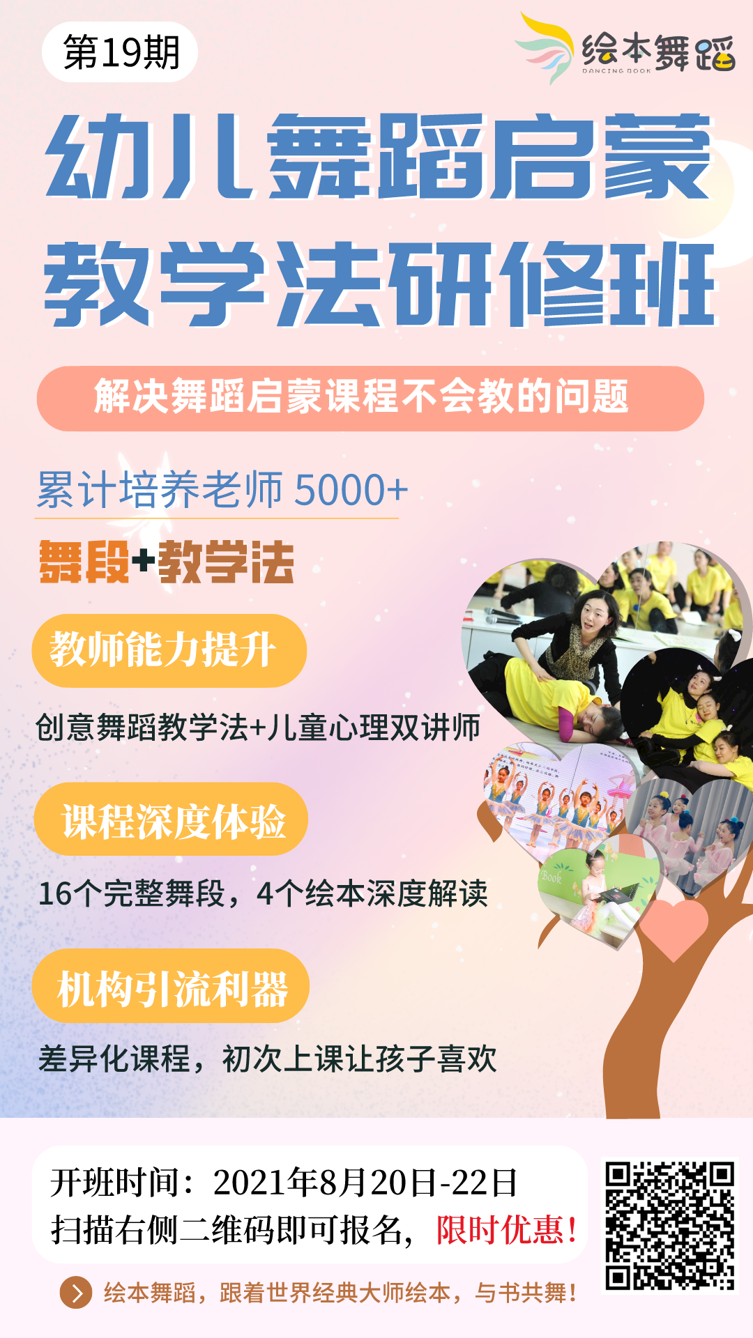为了更好地帮助大家成长,给对绘本舞蹈感兴趣的机构校长和老师一个好的途径,来详细了解绘本舞蹈创新的舞蹈教育方式和体验学习绘本舞蹈,新一期幼儿舞蹈启蒙教学法研修班将于八月开班,可深度体验学习三个单元的绘本舞蹈。