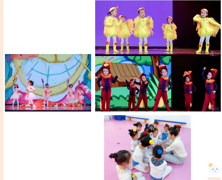 舞蹈是一种表演艺术,登上舞台是每个孩子学习舞蹈的高光时刻。每一个绘本舞蹈单元学习的最后,都有完整的主题舞蹈或者微舞剧的学习,日常教学过程中就像在进行一次次的预演,更好的培养孩子们的舞蹈表现力。