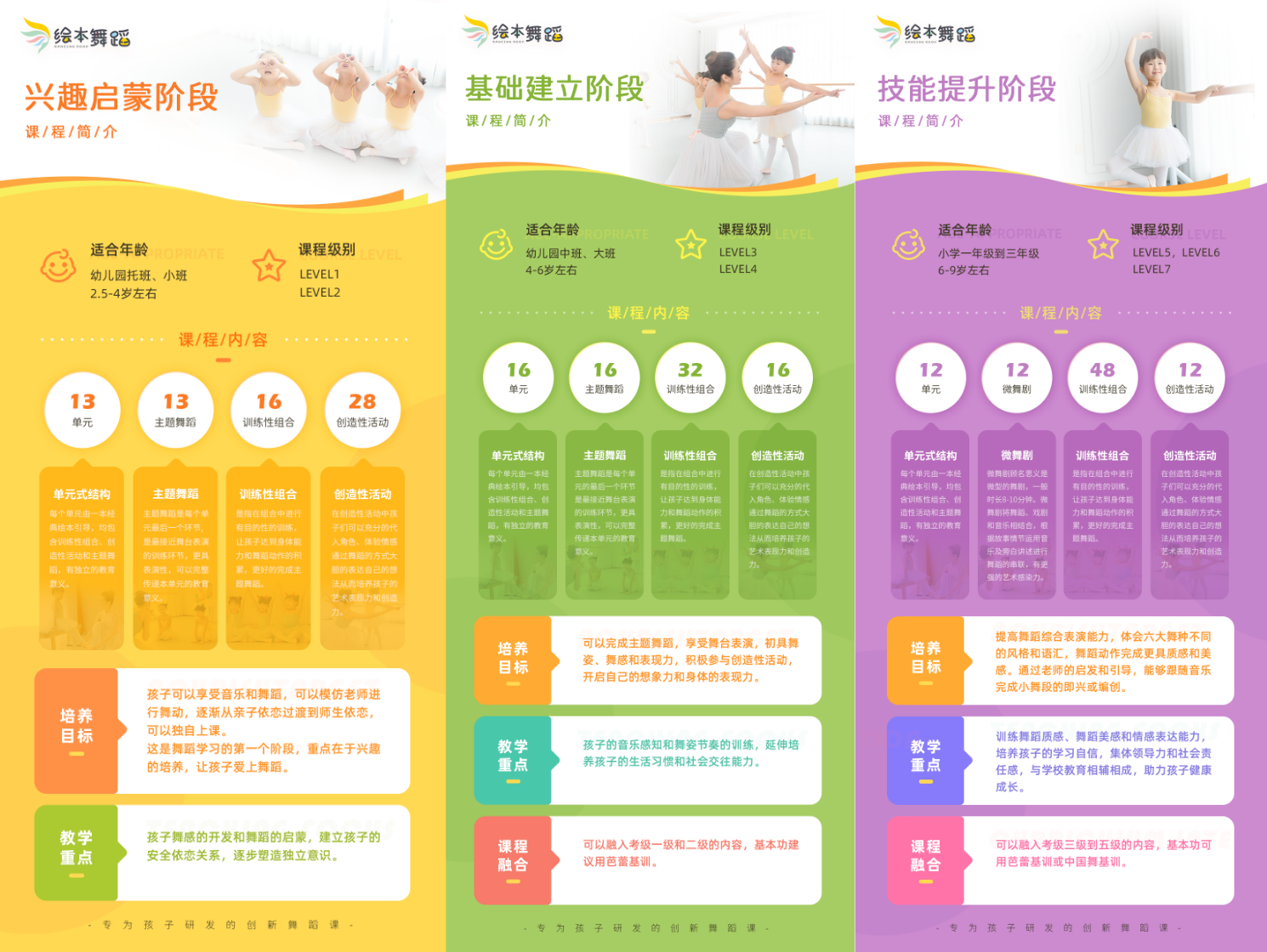 一切精彩的背后都来自精心的设计。八年前一个不成熟的想法发展到今天,成为了横跨三大学习阶段、覆盖2.5-9岁的创造性舞蹈课程体系。这八年绘本舞蹈走的艰难但无比坚定,只为那个最初的目标:让舞蹈回归情感,让教育回归孩子。